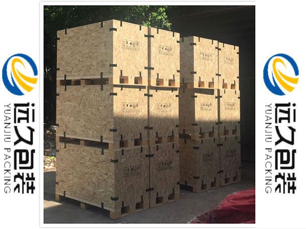 出口免檢OSB卡扣木箱是新型的無釘快裝木箱,無釘化作業不僅方便快捷,而且可重復循環使用,非專業包裝工人也可自行裝卸!卡扣木箱不僅連接牢靠,拆裝方便,由于卡槽嵌在箱板內,平面部分與箱板的板面緊密貼合;增強包裝箱的牢固性的同時,還降低連接件對箱板的磨損。